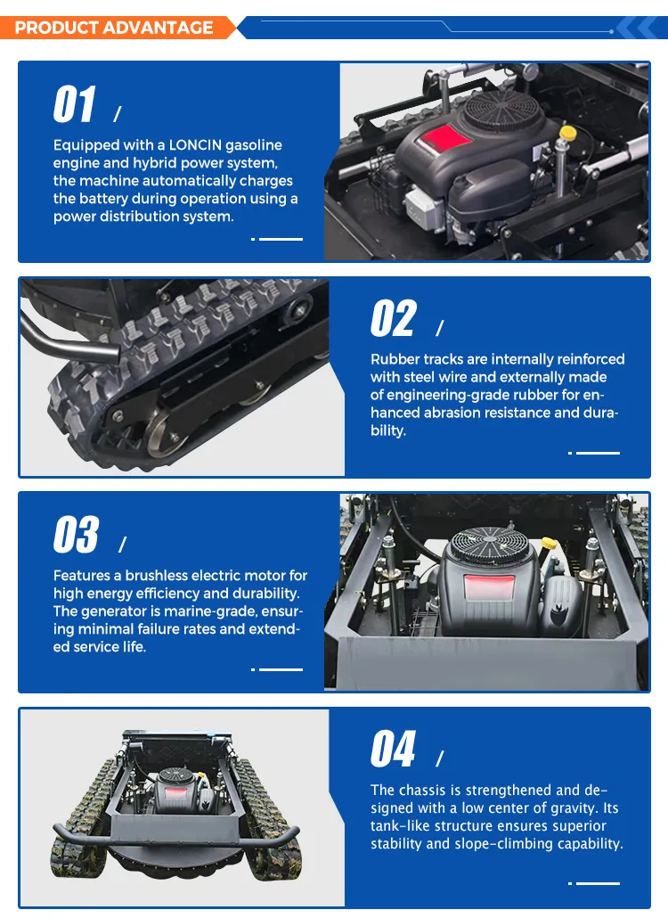 A: It is generally not recommended to use it on a wet lawn after rain. If the mud on the road is still wet, it will not only cause the travel motor to operate erratically, but it may also form clumps that get stuck in the motor, affecting travel speed. This will also reduce mowing performance and shorten the life of the machine.