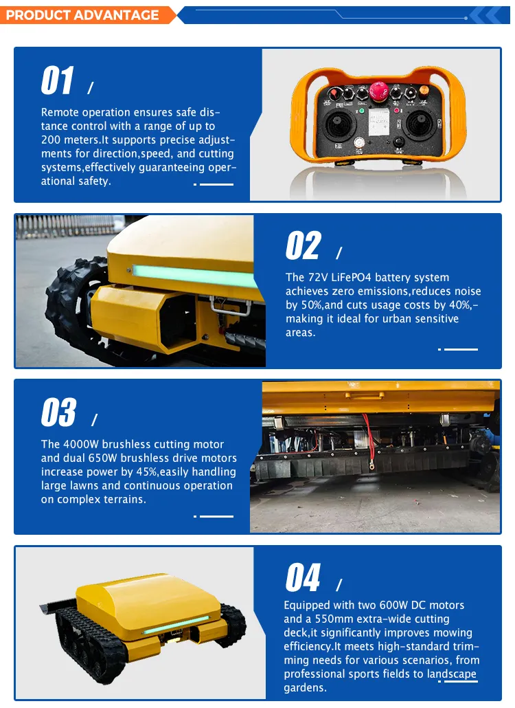 A: The remote control is splash-proof and can be used in light rain. However, it is not recommended to use it in heavy rain. If water accumulates more than 30 cm deep, it may seep into the motor and other components, causing the machine to malfunction.